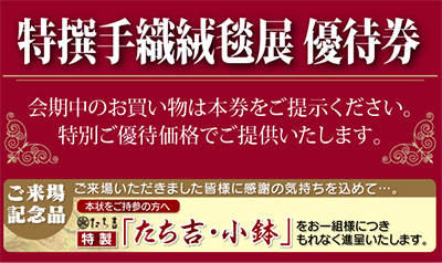 期間中は、下記「優待券」を持参すると、本紙読者限定の特別優待価格に。さらに、来場者にもれなく「たち吉・小鉢」が進呈される。