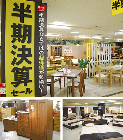期間中店内には、ダイニング・ソファ・ベッド・タンスなど、オール家具からカーテンや雑貨まで、半期決算ならではの特別なお買い得商品が勢揃いとなる。さらに、9月1日(日)までの期間、下記優待券を持参すると、本紙読者限定で決算特別価格からさらに割引に(一部除外品有)。