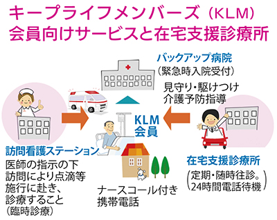 そんな人々のために、往診を中心とした「在宅支援診療所」があり、在宅時の暮らしや健康を医師の立場から総合的に支える制度になっている。