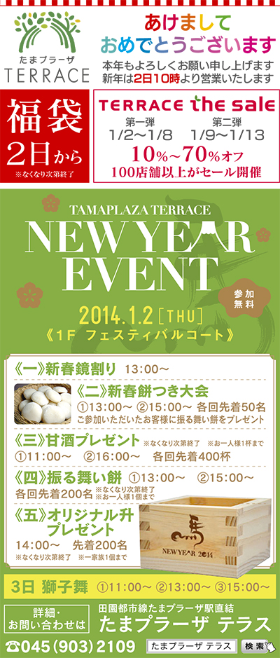 駅直結のショッピングモール「たまプラーザ テラス」では、あす2日からお得がいっぱいの初売りが始まる。