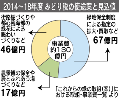 市は、14年度から5年間の緑化保全施策として「これからの緑の取組」(案)を公表しており、税収は、同取組の財源の一部として活用される。