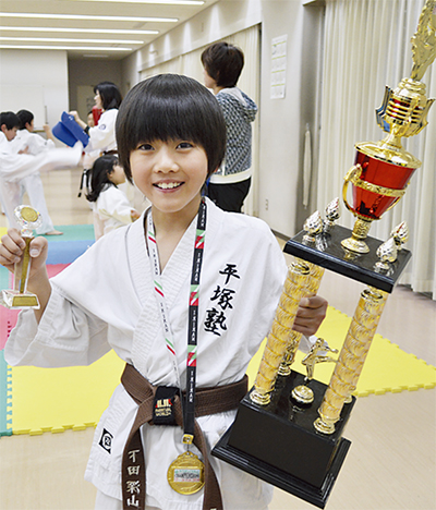 市ヶ尾小4年生の下田深山君(10)=都筑区・平塚塾=が2月14日、イランのテヘランで開催された空手の世界大会で優勝・金メダルを獲得した。同大会はWNFCKO(世界新実戦空手道機構)が主催。下田君は30kg以下級に出場した。