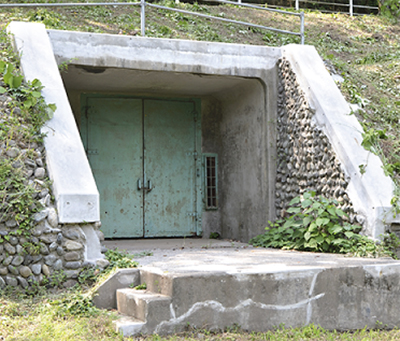 同園を訪ねた人は、緑の扉がついた洞窟のような入り口を目にした人も多いのではないだろうか。弾薬庫はコの字型で入り口が2カ所になっている。部屋の大きさは幅が25〜30m、奥行きは7m、天井は最大5〜6m。大砲や地雷、手りゅう弾が扱われていた。