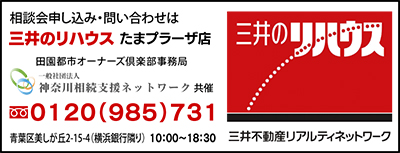 三井のリハウスでは、相続や成年後見の疑問に応える無料個別相談会を8月31日(日)、たまプラーザテラスで開催。「相続税課税対象の家庭が増えると聞いたけど、我が家は?」「遺言書の作り方は?」「親が認知症になり、所有する不動産の売却ができない」など、老後・相続にまつわる悩みはなかなか相談しづらいもの。当日は弁護士、税理士、司法書士が集まり、法律に関するさまざまな悩みをプロの視点で解決してくれる。
