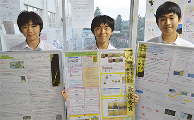 中高生が実験や研究などを発表する日本学生科学賞の神奈川県作品展で7日、山内中学校(簗瀬一爾(かずや)校長)の宮崎椋成(りょうせい)君(2年)と小溝龍君(3年)、田村俊樹(としき)君(2年)が特別賞を受賞。11月から行われる全国審査へ挑む。