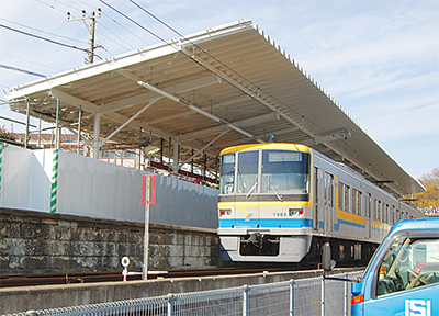 横浜高速鉄道(株)=本社・横浜市中区=は現在、昨年2月に落下したこどもの国線「こどもの国駅」ホームの屋根復旧工事を進めている。同社によると完成は3月末の予定。