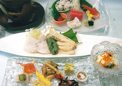 料理長が丁寧に仕上げた特製だしに旬の鱧をくぐらせて食す「鱧しゃぶ」や定番の湯引きなどその魅力を存分に楽しめる逸品が揃う「鱧懐石」。また、煮浸しや稚鮎唐揚げなどさまざまな鮎料理を満喫できる「鮎懐石」も見逃せない。秘伝のタレで香ばしく焼きあげる「鰻セット」(3680円・税別)もオススメだ。