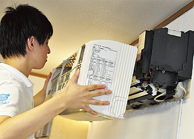 エアコンを分解して内部まで高圧洗浄。ホコリやカビ、花粉を徹底除去して、アレルギー防止になる上、冷房効率も改善されて省エネ対策にも。お掃除ロボット付きタイプ、天井埋め込みエアコンは、1台別途6900円(税別)から。※駐車場代一律千円別途