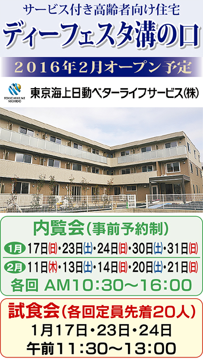 賃貸住宅の「自由さ」と、介護サポートの「安心」を兼ね備えたサービス付き高齢者向け住宅「ディーフェスタ溝の口」が高津区に完成。地域住民向けの内覧会と試食会を開催している。