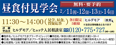 そんな同ホームこだわりの「食」を堪能できる昼食・お土産付き無料見学会が2月11日(祝)、12日(金)、13日(土)、14日(日)に行われる。時間は午前11時30分から午後2時まで。各日限定5組、現地集合。ホームの温かい雰囲気も体感できる。