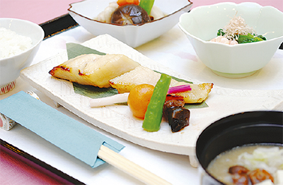 噛む力や飲み込む力など身体の状態に合わせて9種類もの食事形態で対応。こまやかな配慮が行き届くのも直営キッチンだからこそだ。「食は人生の大きな喜び。旬の食材を使い、季節の行事に合わせたイベント食なども好評です」とスタッフ。