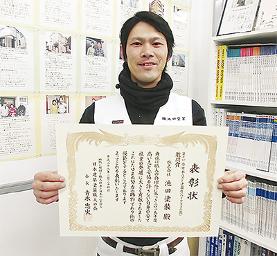地域密着を大切にし、真摯(しんし)な仕事ぶりが大きな評判を呼んでいるリフォーム塗り替え専門店「池田塗装」。全国の塗装業約200社からなる日本建築塗装職人の会で「全日本ベスト塗装店賞」を受賞した。受賞はこれで3年連続。顧客の満足度の高さや、塗装業界のイメージアップに貢献した姿勢などが総合的に評価された結果だ。