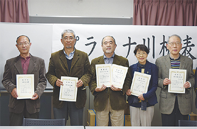 青葉消防署(関谷寿男署長)は4月7日、市ケ尾町のふれあい青葉で、防災がテーマの川柳コンクール「プラチナ川柳」の表彰式を行った=写真。
