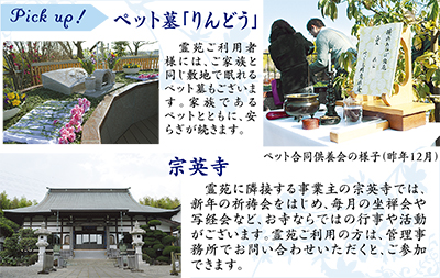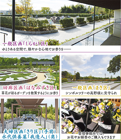 このほか、四季折々の花が彩るガーデンのような「はなみずき区」や、高野槇(こうやまき)が見守る「まき区」、夫婦の思い出をコンセプトにした「きり区」など、個性豊かな区画も。お墓の継承者がいない場合も安心して日々を過ごせるよう、霊苑が管理・供養をしてくれる永代供養墓「我逢人」も昨年に加わった。能瀬さんは「さまざまな状況のご家族が安心できるよう、体制づくりを進めてきました」と話す。近年では「遠い田舎の先祖や父母のお墓を、近くに移したい」という相談も増えているという。「お気軽にご相談ください」