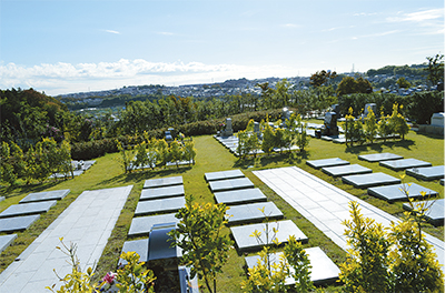 春には桜、夏には木々が木陰をつくり、四季折々の花と緑が安らぎを与えてくれる横浜あおば霊苑=鉄町。総面積3万平方メートル以上という広大な空間は、見晴らしの良い高台に臨む「天空霊苑」を思わせる。昨年に区画を増設し、多様なデザインの11区画と永代供養墓、ペット墓を備える同霊苑の「今」を取材した。