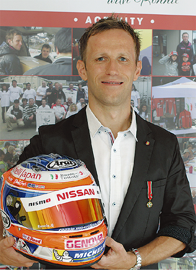 03年に活動拠点を日本に移し、05年からスーパーGTに参戦。11年と12年、14年と15年にシリーズチャンピオンに輝くなど、近年は圧倒的な成績を残している。13年から日産自動車のワークス・チーム「NISMO」に所属し、松田次生さんとのコンビで「MOTUL AUTECH GT-R」に乗り、今シーズンは開幕戦、第2戦で1位を獲得。現在は第4戦を終え、首位だ。「スーパーGTは自動車メーカー各社が技術を競う場。最高の環境」と話すロニーさん。一方、レース中は常に一瞬の判断を要求され、重力加速度など身体にかかる負担も大きい。ジムに通い、徹底したコンディショニングに努めているが、レース後は「首や腰、おしり、足が痛い」とレースの厳しさを語る。それでも「結果が悪いことはプライドとしても受け入れられない」と話し、「今年はチームとして3連覇、自分としては5度目のチャンピオンとなる大きなチャンス」と意気込みを語る。