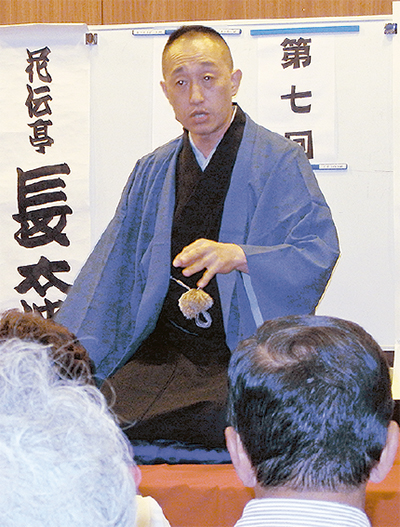 第7回を迎えた「あおば落語会」が8月28日、ビオラ市ヶ尾地域ケアプラザで行われた。当日は社会人落語家の花伝亭長太楼さんと遊馬亭保育さんに加え、真打の三遊亭遊馬さんが登場。100人以上の観客が集まり、盛り上がった。
