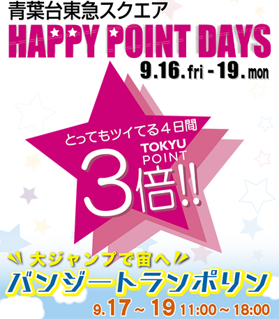 青葉台東急スクエアは9月16日(金)から19日(祝)まで「TOKYUポイント3倍キャンペーン」を開催する。