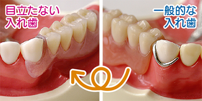 同院が自由診療で扱うのは、薄くて針金(バネ)が見えにくい義歯。「部分入れ歯の場合、すぐ隣の歯にバネを掛けるのが一般的だが、当院では歯肉と同じ色のバネを使うので目立ちにくい」と相原院長。すでに入れ歯を使用中の人も、銀色の針金を白色に替え、目立ちにくくすることが可能という。通常、入れ歯の土台にはレジン(合成樹脂)が使われるが、同院では軽いチタンを採用。「強度がより向上し、レジンに比べて薄くなるので、あごになじみやすく違和感の軽減も期待できる」と話す。
