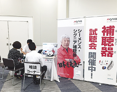 会場では現在使用中の補聴器の悩みをはじめ、補聴器の選び方などを認定補聴器技能者や言語聴覚士が親身にアドバイス。聴力測定後の試聴、好評を博す補聴器の助成金に関する個別相談会も実施する。