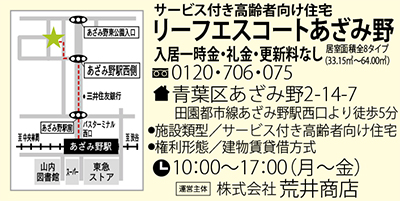 「介護とまではいかないが自宅での生活に不安を感じる」「1人暮らしの親が心配」。そんな悩みを解決する安全・安心な暮らしがかなう住まい。それが、サービス付き高齢者向け住宅「リーフエスコートあざみ野」だ。