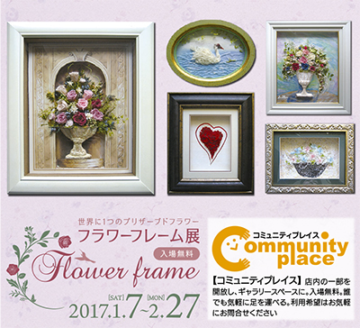 東急リバブル(株)青葉台センター「コミュニティプレイス」で1月7日(土)から2月27日(月)まで、世界に一つのプリザーブドフラワー「フラワーフレーム展」が開催される。午前10時〜午後6時(火水定休)で入場無料。