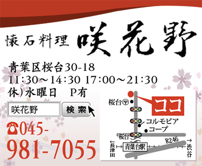 懐石料理「咲花野(さがの)」はGWも休まず営業