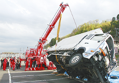 実際に引き起こしを担当し、社員20人と参加した青葉ロードサービスの明石賢二代表取締役は「大きな事故は減っており、事故対応を学ぶ場も少ない。若い社員には刺激になったのでは」と感想を語った。また、研修会に参加した同組合の亀山善之理事長は「交通事故や災害時などの際に、円滑に道路を通行できるようにするのが我々の使命」と思いを話していた。