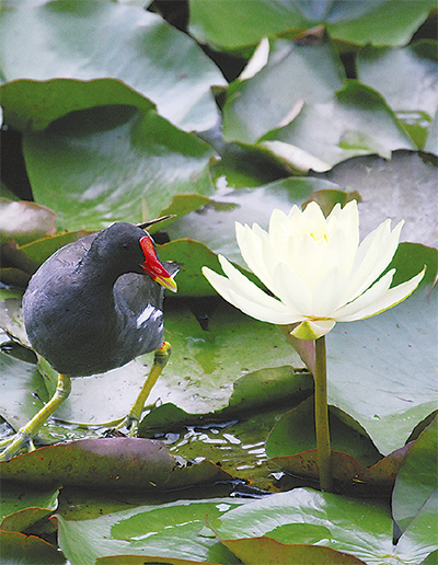 青葉土木事務所によると、ハスの花は6月頃から咲き始めたという。区内で一番大きな池がある同公園ではこの時季ハスの葉が生い茂り、黄色やピンクなどのあざやかな花が顔をのぞかせている。7月24日には野鳥と花を同時にみることができ、散策に訪れる人を楽しませていた。