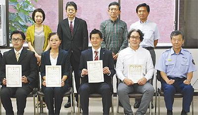 迅速な人命救助を行ったとして、陸上競技クラブのNPO法人横浜アスリートクラブ(本部/青葉台2丁目)のメンバーが、9月に港北消防署(安江直人署長)から表彰された。