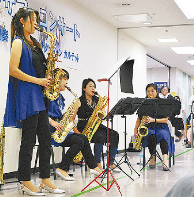 出演は、地元で活動する「リーブル・サクソフォン・カルテット」。代表の小野陽子さんが、同院に勤めていることが縁で実現したという。当日は地域住民など多くの観覧者が来場。ソプラノ、アルト、テナー、バリトンのサックスで「美女と野獣」や「坂本九メドレー」など幅広い世代に向けた8曲を披露した。小野さんは「私自身入院経験があり、患者さんに生の音楽を聞かせたいと思っていた。夢がかなってうれしい」と笑顔をみせた。