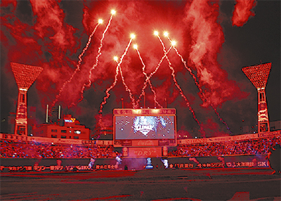 チームを率いるアレックス・ラミレス監督は試合後のセレモニーで「このあと阪神に勝って広島に行き、必ず日本シリーズのために横浜に帰ってくる」と力強く宣言。その後は花火と炎の特別企画「ファイナルセレブレーション」が実施され、鮮やかな演出に満員のファンが沸いた。