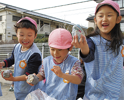 たまプラーザもみじ保育園(福田誠園長)が2月1日、食育を兼ねた焼きいもイベントを開催した。