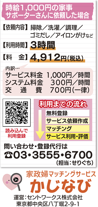 家事を求める人と提供する人のマッチングを行うWebサイト「かじなび」は、川崎市・横浜市を中心に登録者数を伸ばしている。家事提供者の多くは家事経験がある主婦など。プロの業者より料金が安く、1時間から利用でき、「ふだん使い」がしやすいと好評だ。