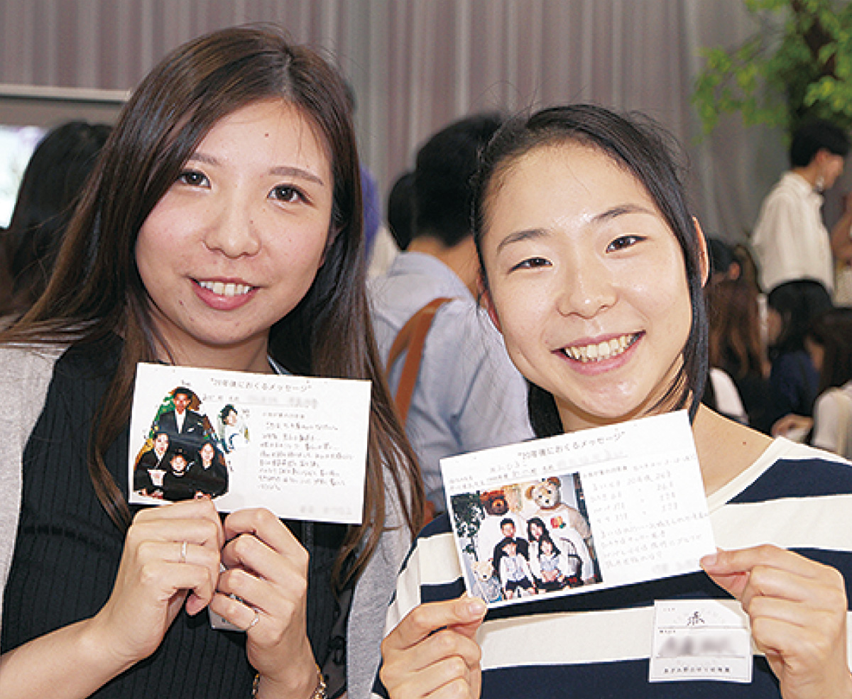 「かわいいお嫁さんかケーキ屋さん」と将来の夢を書いていた渡邊麻衣さん(23)は、現在パフォーマーとしてアクロバットミュージカルで活躍している。「覚えていないけれど、きっとなりたかったんだろうな」と笑った。また、一緒に出席していた寺島沙季さん(24)は「(幼稚園児の時には)大きいと感じていたホールが、大人になって来てみると小さく感じる」としみじみ語っていた。