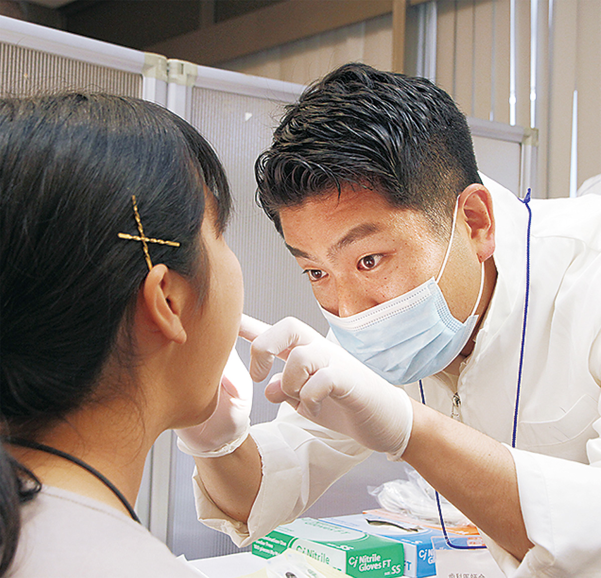 6月4日から10日の「歯と口の健康週間」に合わせた恒例行事で、同会が地域貢献として毎年続けている。当日は同会会員の歯科医が無料で検診するほか、相談・質問に応じてくれるとあって、多くの区民が来場。参加した親子は「1年に1回、検診や相談できる機会があると助かる」と感想を話していた。