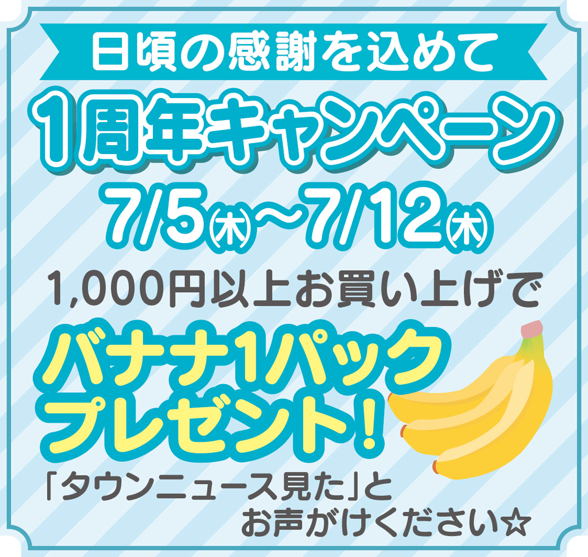 1周年を記念し12日まで、千円以上のお買い上げでバナナ1パックプレゼントも。2階のレンタルスペース(1時間990円〜)も好評営業中だ。