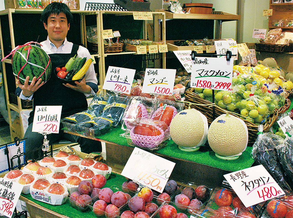 大粒のシャインマスカットや瑞々しい桃、マンゴーなど百貨店に負けない品揃えの同店では、お中元にピッタリの詰め合わせギフトも大好評。税別5千円〜発送可能なので、相談してみては。