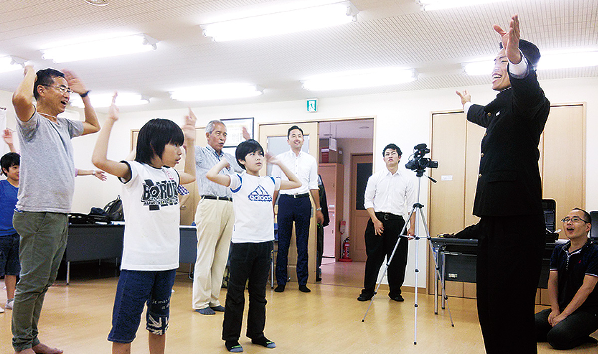 地元大学生らが地域を盛り上げようと結成した「荏子田・青葉応援団プロジェクト」による応援体験が6月24日、あざみ野会館で行われた。