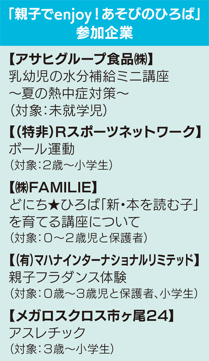 今まで別々の日程で各企業・団体が開催していた「どにち★ひろば」を1日で体験できるのが、28日の「あそびのひろば」だ。区こども家庭支援課は、事業を周知するきっかけにしたいと狙いを話すほか、協力企業・団体が一堂に会することで民間同士のさらなる連携につながることも期待しているという。