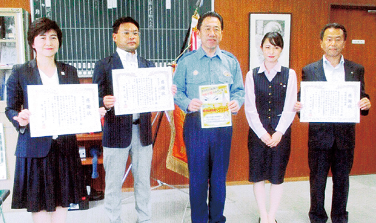 贈呈式では山本署長が直接感謝状を手渡した。山本署長は「警察の手の届かないところで最後の砦として協力してもらい、ありがたい」と感謝を伝えていた。