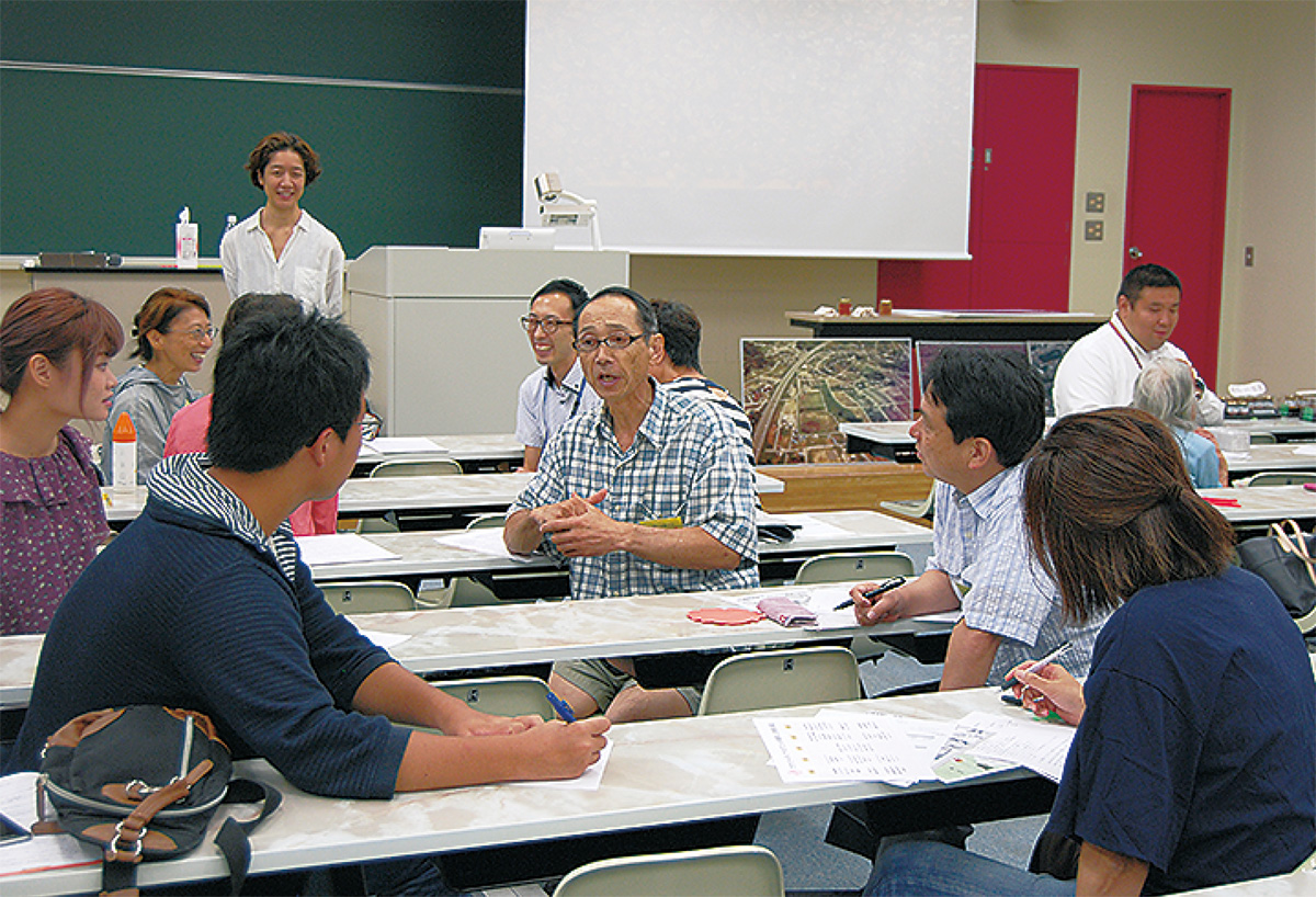 青葉区とNPO法人森ノオトが進める地域活性化事業「フラワーダイアログあおば」の一企画として9月7日、国学院大学で対話型講座が開かれた=写真上。