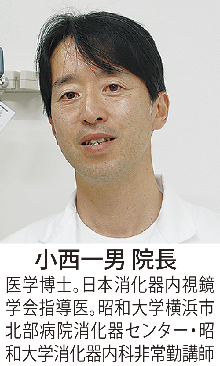 大腸内視鏡検査はまず、腸を空にすることからスタートする。検査前日に下剤を内服。当日、数回に分けて下剤を服用する。「下剤を飲むのが辛いという患者様もいる。状況に応じて量の調整や検査食併用などでなるべく辛くない方法を選択します」と小西院長。