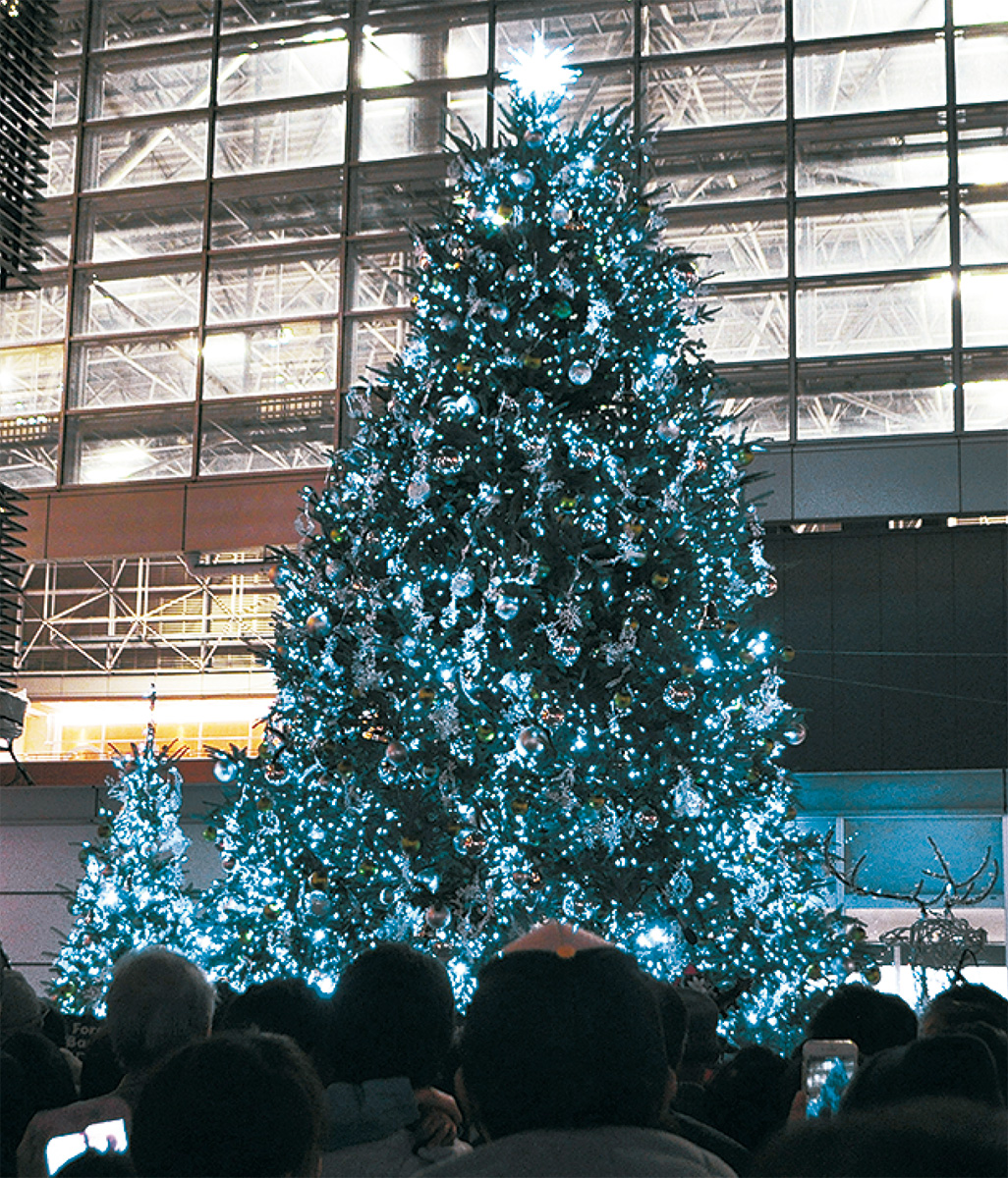たまプラーザテラスで11月3日、クリスマスイルミネーション点灯式が行われた=写真。今年は定番のモミの木のクリスマスツリーのほか、高さ7mのトナカイも登場。合図とともに一斉にライトアップされると、見物客から大きな歓声が上がった。イルミネーションは12月25日まで実施。