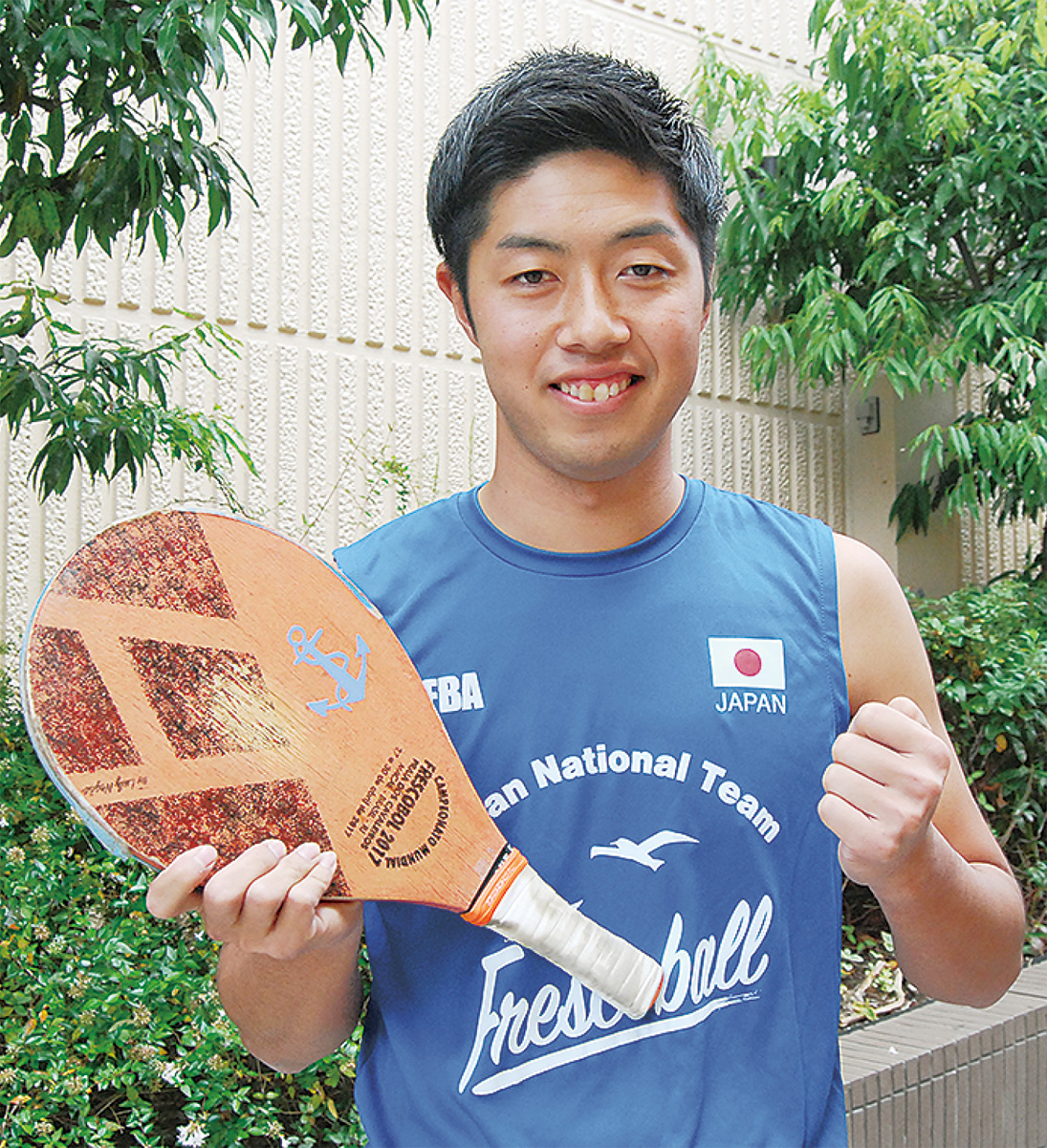 ラケットとボールさえあれば公園や道端などでも練習ができ、老若男女誰もが楽しめる点が一番の魅力。土日は社会人選手と共にビーチで練習を重ね、日本代表に選ばれてからは一昨年はイタリアで世界大会、昨年は同選手権に出場するなど世界が舞台に。「ただの大学生だった自分が、フレスコボールで人生が変わった」と話し、「みんなが楽しむことが好きな自分にとって、幸せになる要素が詰まっていた」。