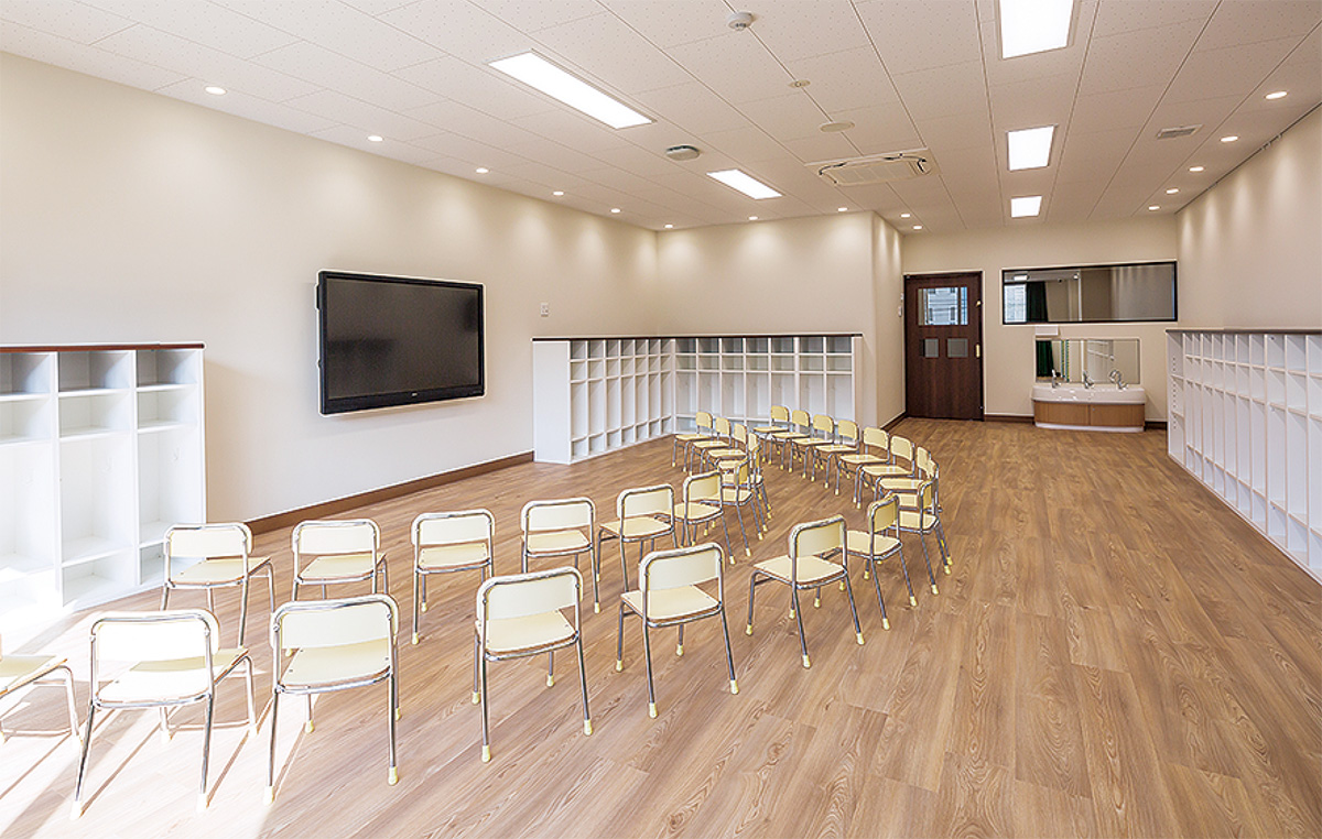 このほど、園舎が竣工。鉄骨造2階建て、延床面積1438・34平方メートルの建物工事を担当したのは地元2社。設計・監理は(株)野路設計(青葉台)、施工は(株)北芝建設(新石川)だ。