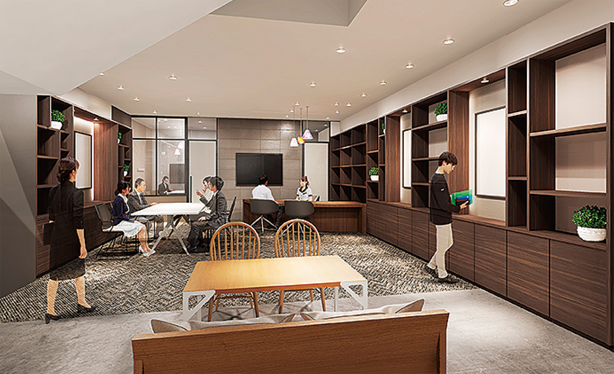 駅徒歩5分の同施設には、カフェなど飲食店もオープン予定で気軽に立ち寄ることが可能だ。『庭』をイメージした施設で、緑も多い。