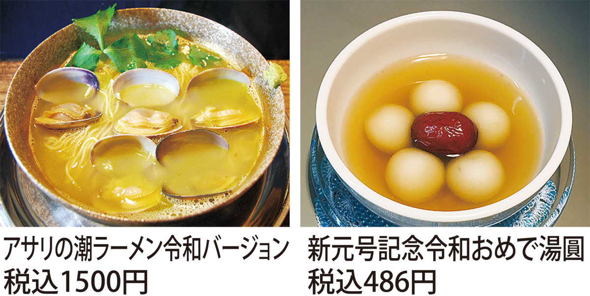 たまプラーザで創業46年の中華料理店「黒龍」では、「新元号記念 令和おめで湯圓(タンエン)」を本日から提供する。黒胡麻の餡を包んだ白玉団子の中華風ぜんざいで、縁起の良い食材のナツメを用いて紅白に見立てた。総料理長の深田孝さんは「昭和、平成と元号の名を冠したデザートを提供しているので、今回日の丸をイメージした令和のおめでたいメニューを作りました」と話している。