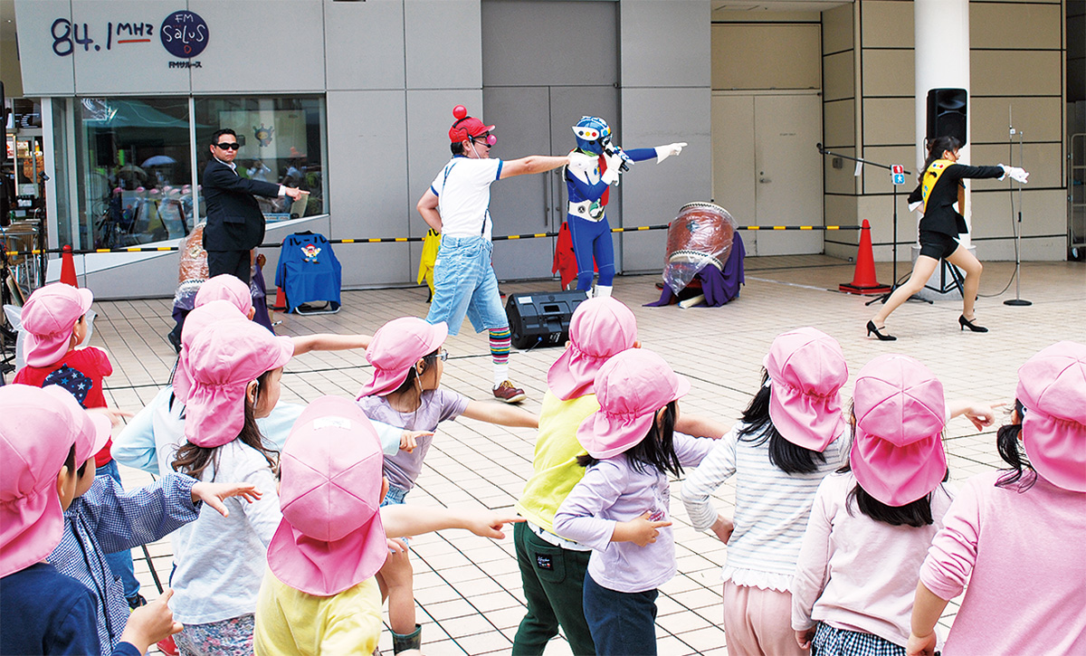 キャンペーンでは、港北区の日吉自動車学校の指導員で結成する「劇団ルール」による交通安全を呼びかける演劇が行われ、見学に訪れた地元の美しが丘保育園の園児と一緒に横断歩道の安全な渡り方などを歌とダンスを交えて練習。「右見て、左見て、もう一度右見て」などの呼びかけに園児も元気に応え、最後は会場全員で「横断歩道は歩行者優先」「乱横断はしない、させない、渡らせない」と声を合わせた。