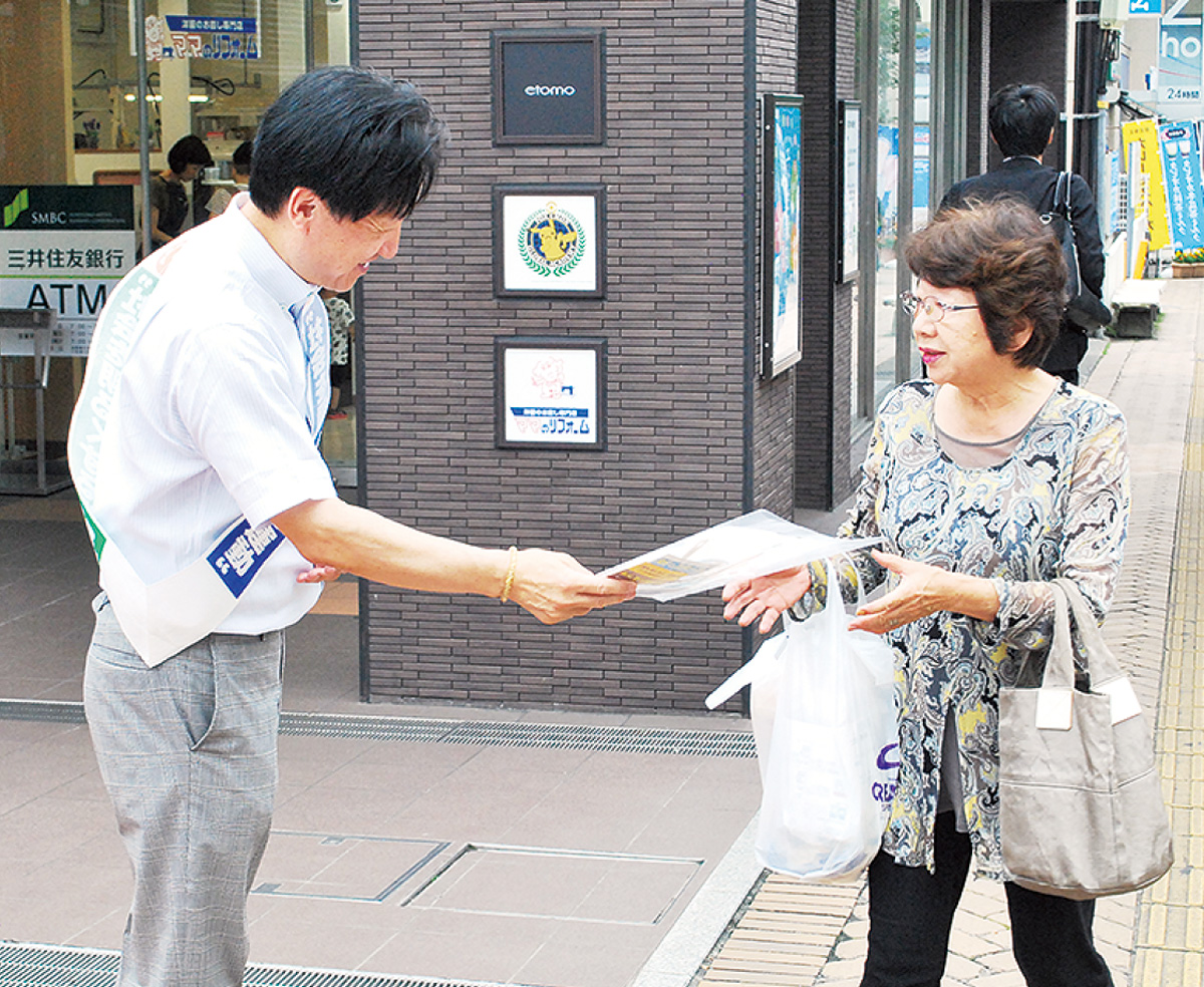 「社会を明るくする運動」の啓発キャンペーンが7月18日、青葉区内の駅前で行われた=写真。
